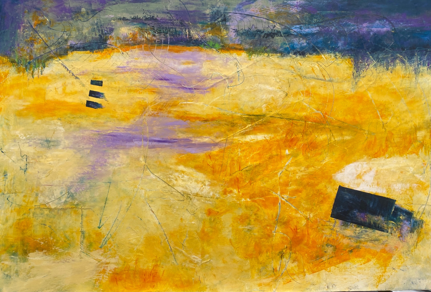 Mixed media abstract landscape on canvas.