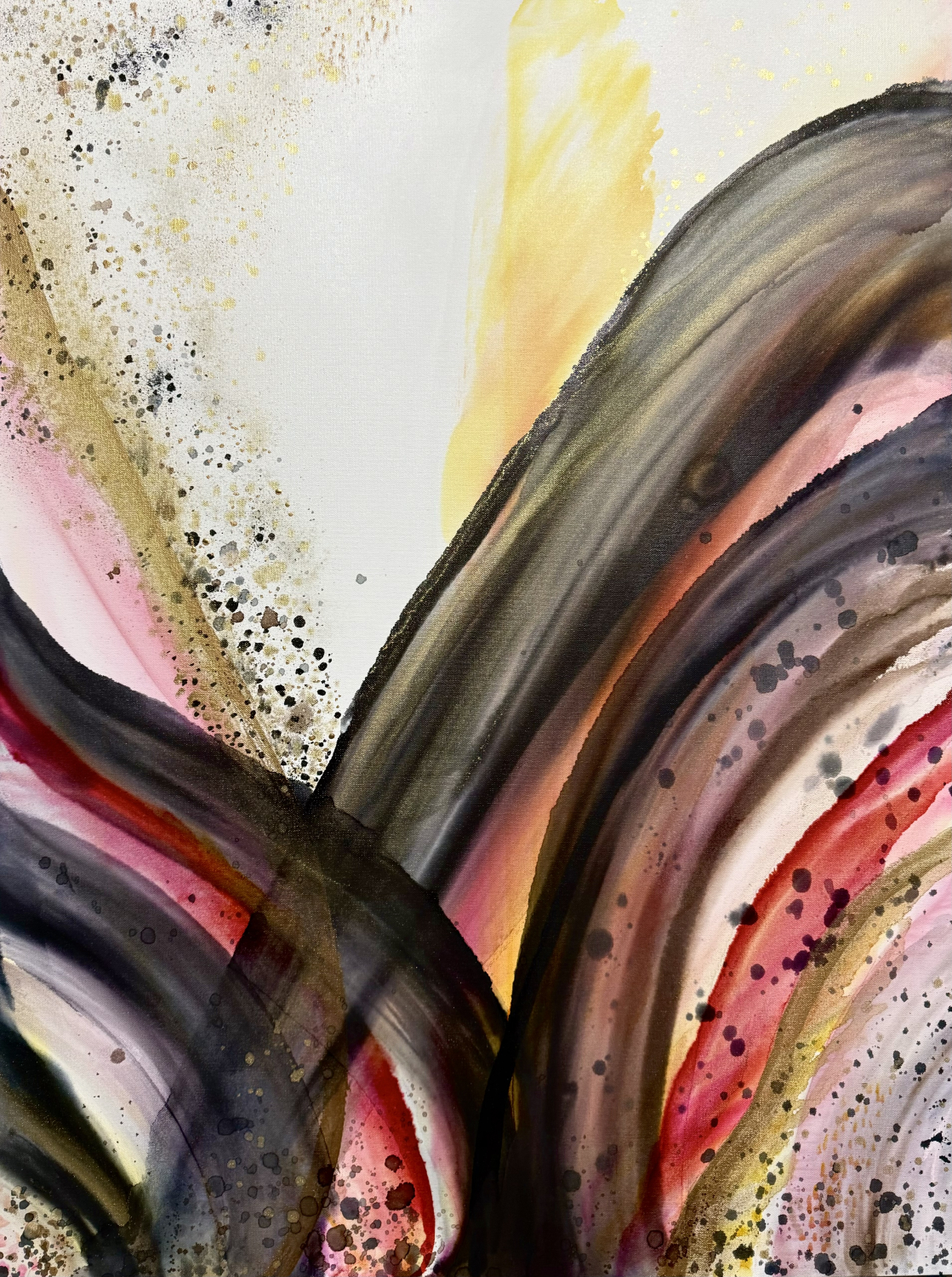 Ketaki lets the inks guide her in capturing emotions, creating a meditative and encouraging artistic experience. She crafts her compositions often by layering these ethereal and organic ink patterns with the boldness and structure of acrylic and other paint media.